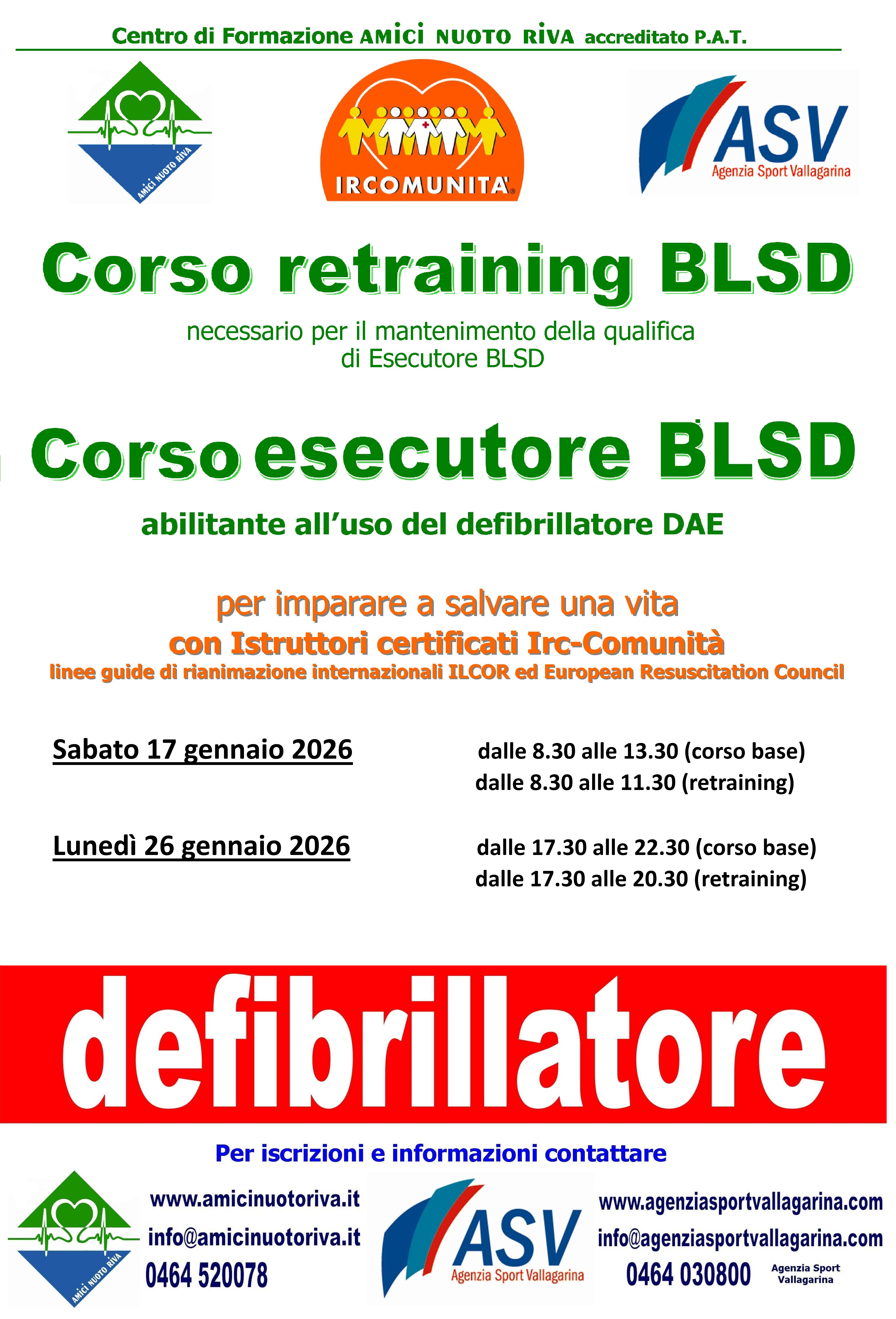 Agenzia Sport Vallagarina organizza corsi di rianimazione cardiopolmonare esecutore BLSD per l’abilitazione all’uso del defibrillatore DAE e di RETRAINING per aggiornare gli attestati conseguiti nel 2024.
